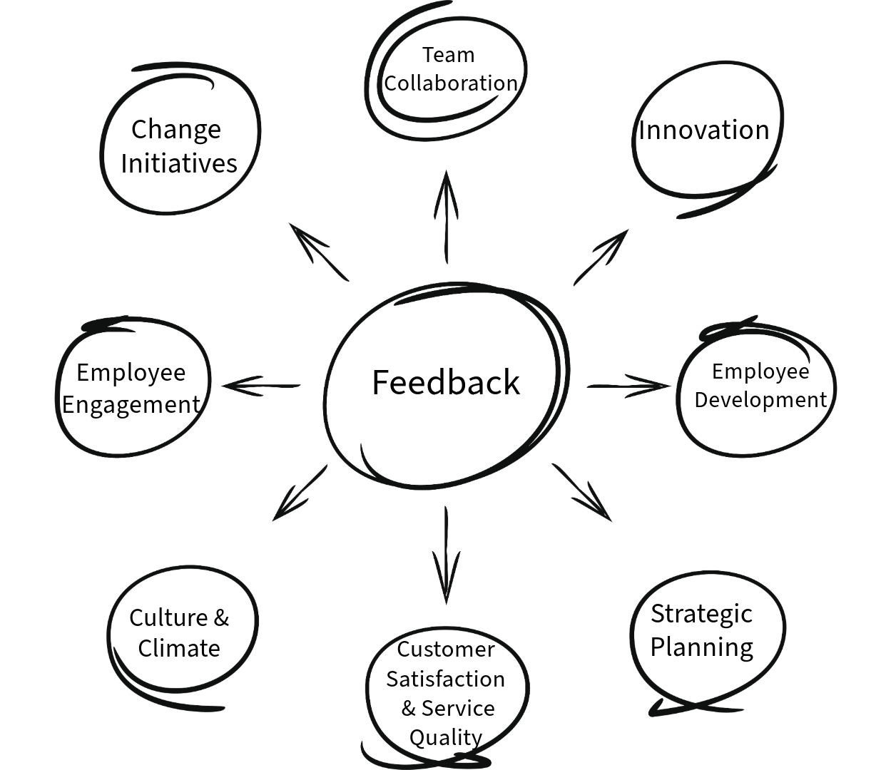 Key aspects of an organization's success, such as the ability to effectively navigate change, to innovate, to engage employees so they're not just putting in the time but the effort as well, and many more shown in the image here, depend on effective feedback skills and processes.